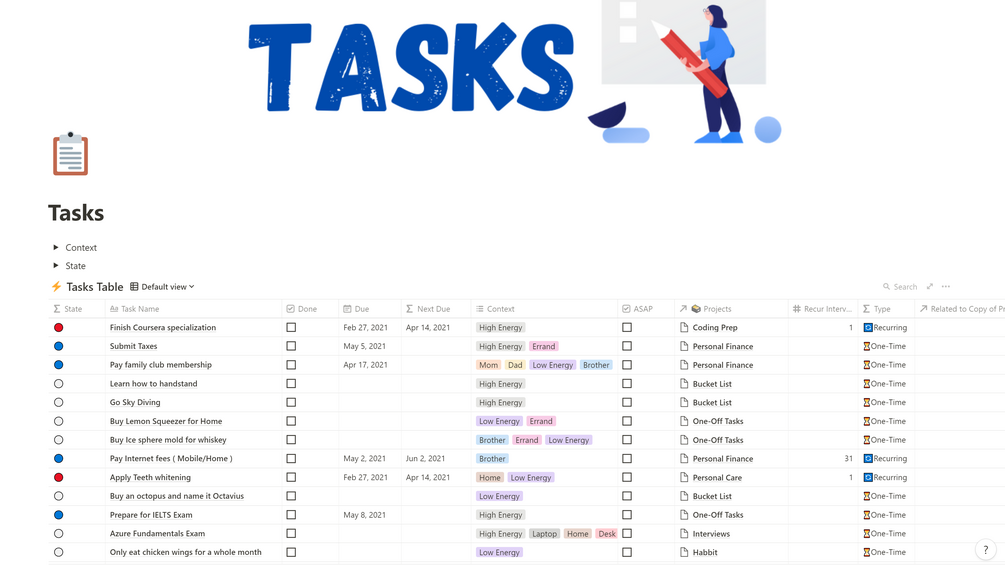 GTD Notion template to increase your productivity and gain visibility across all your current and future tasks - Based on the Getting Things Done Book by David Allen
